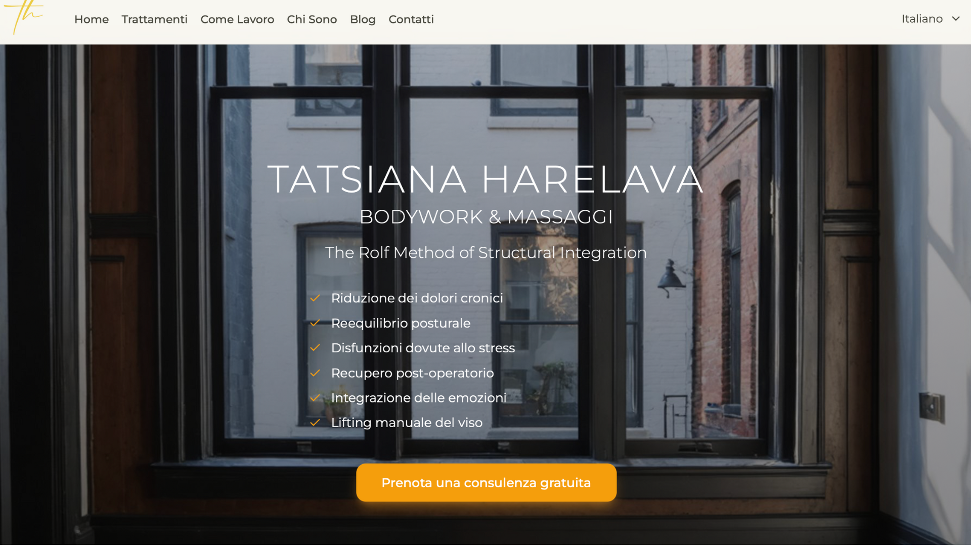 Un sito one-page minimalista per uno specialista in bodywork a Bolzano.